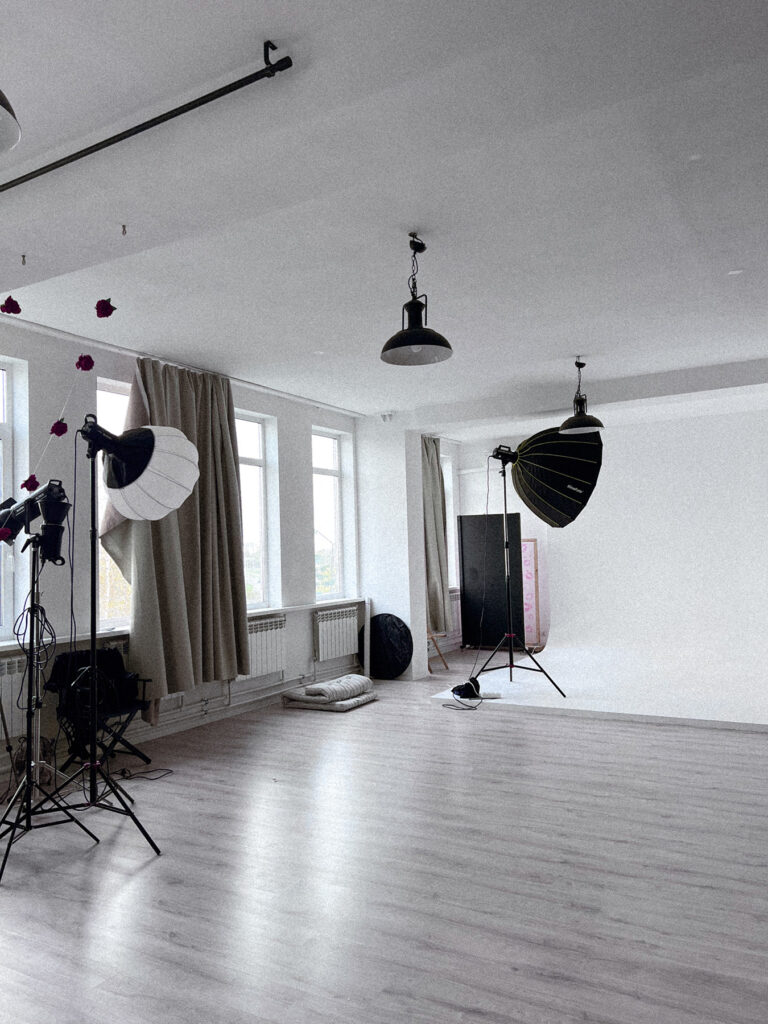 А еще мы всегда помогаем вам со светом, если вам необходима помощь в постановке схем или просто волнуетесь. Огромная гримерная комната для ваших сборов и размещения команды на фотоднях.